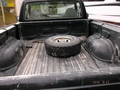 On one of his trips to the dump though he found a broken box liner that someone had discarded, where they had cut out the floor.. so he thought that would work perfect for his truck and he snagged it and brought it home.